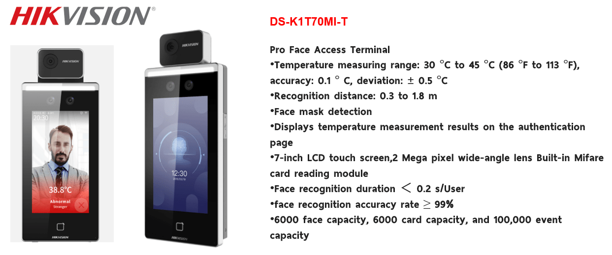 ACS-FR-K1T70MI-T:เครื่องสแกนใบหน้า วัดอุณหภูมิ Face Recognition +Temp