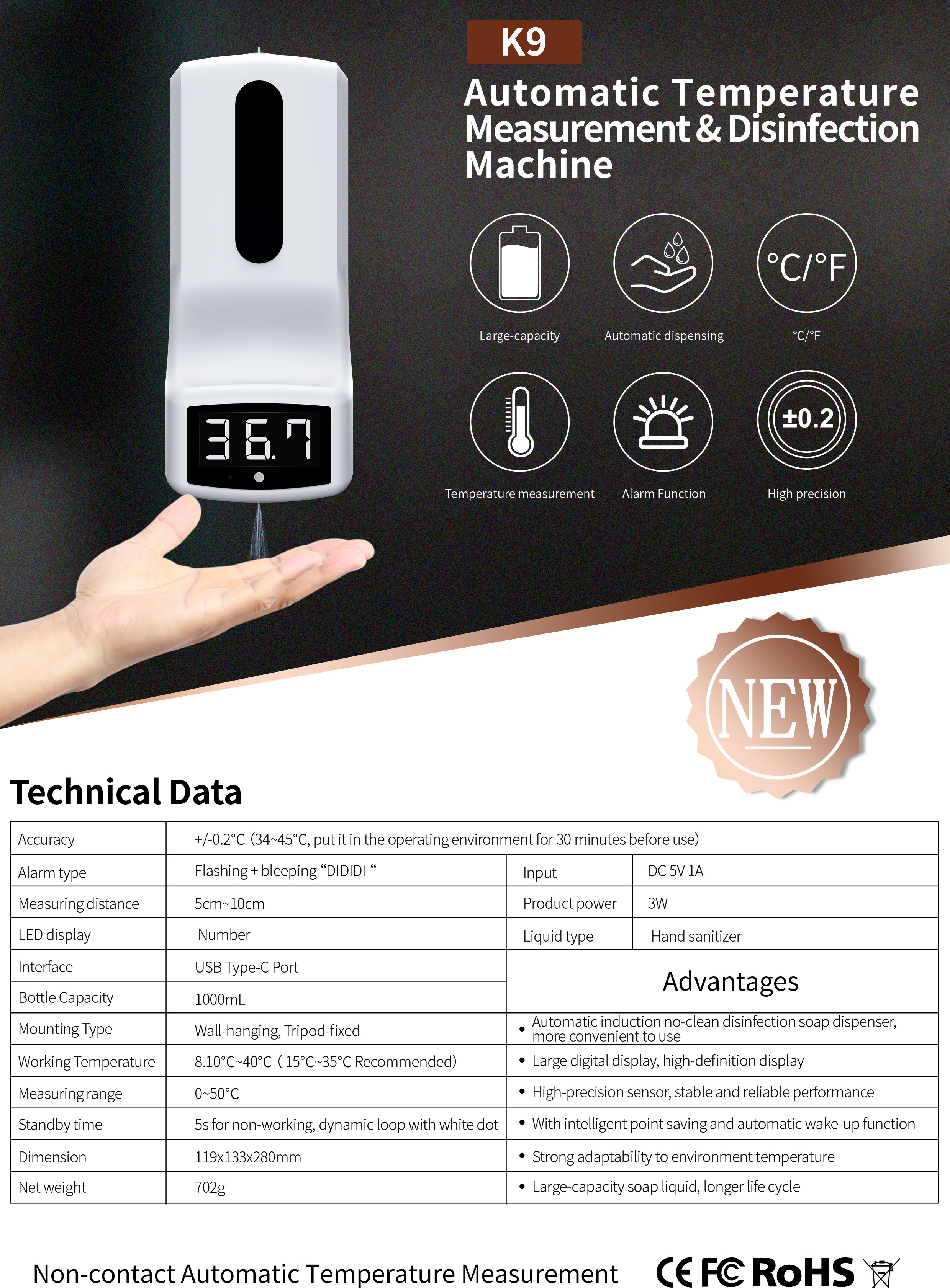-Accuracy: 0.2C (put in the operating environment for 30 minutes before use)