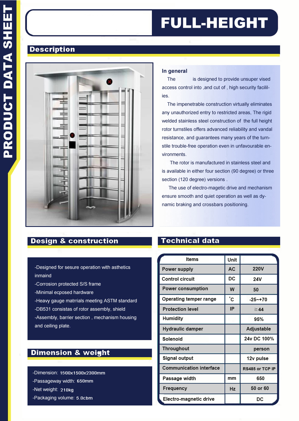 TS-FH10:ประตูหมุนกั้นคน Full Height Turnstile